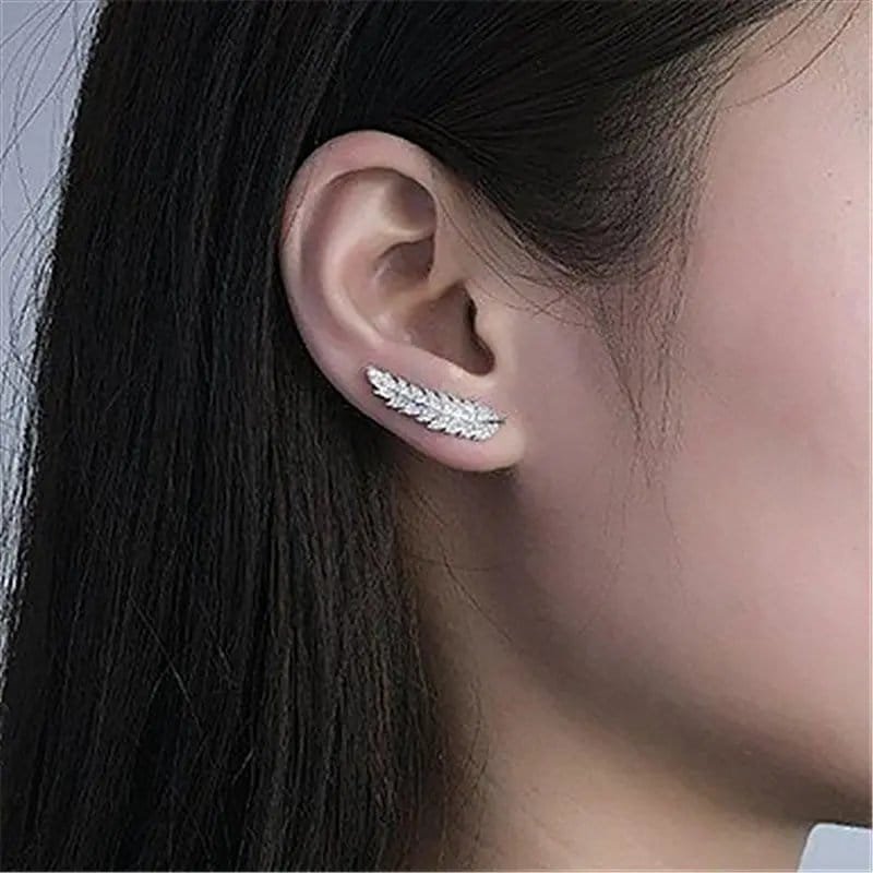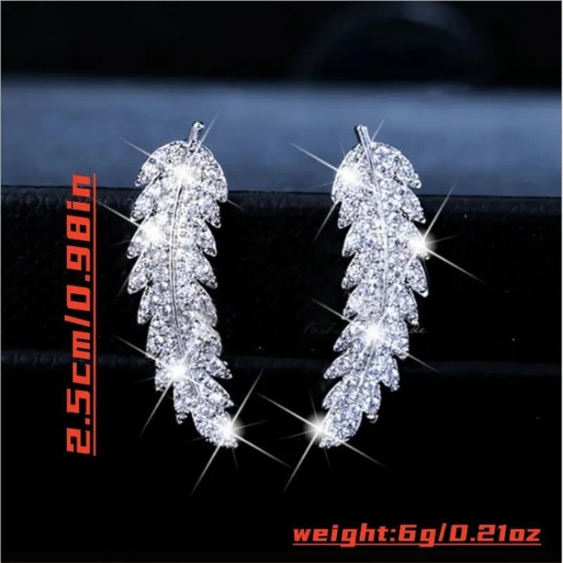 أقراط بتصميم ريش من حجر الراين ، إكسسوارات مجوهرات أنيقة وعصرية للفتيات والنساء