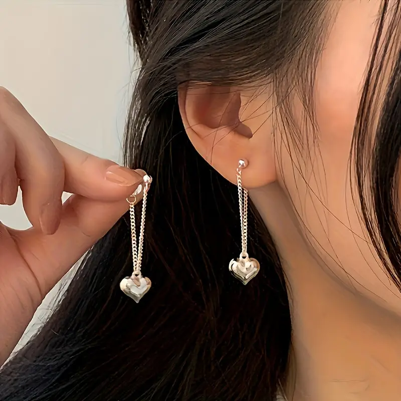 مراجعة واحدة لـ أقراط قلب الموضة للنساء – أقراط مقاومة للصدا معلقة من السبائك مع قلادة قلب، مجوهرات أذن أنيقة غير مسببة للحساسية للمراهقين والبالغين، بدون طلاء – زوج واحد