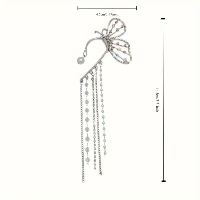 أقراط مشبك طويلة بفراشة من الراين للنساء – أنيقة لا تحتاج لثقب الأذن للاحتفالات والمناسبات