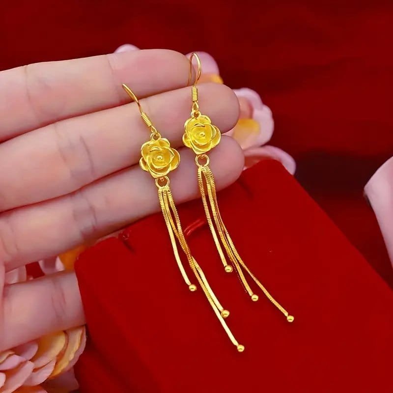 أقراط نسائية أنيقة مطلية بالذهب من النحاس مع شرابة وردة – أسلوب فاخر عتيق، مثالية للأعراس والحفلات