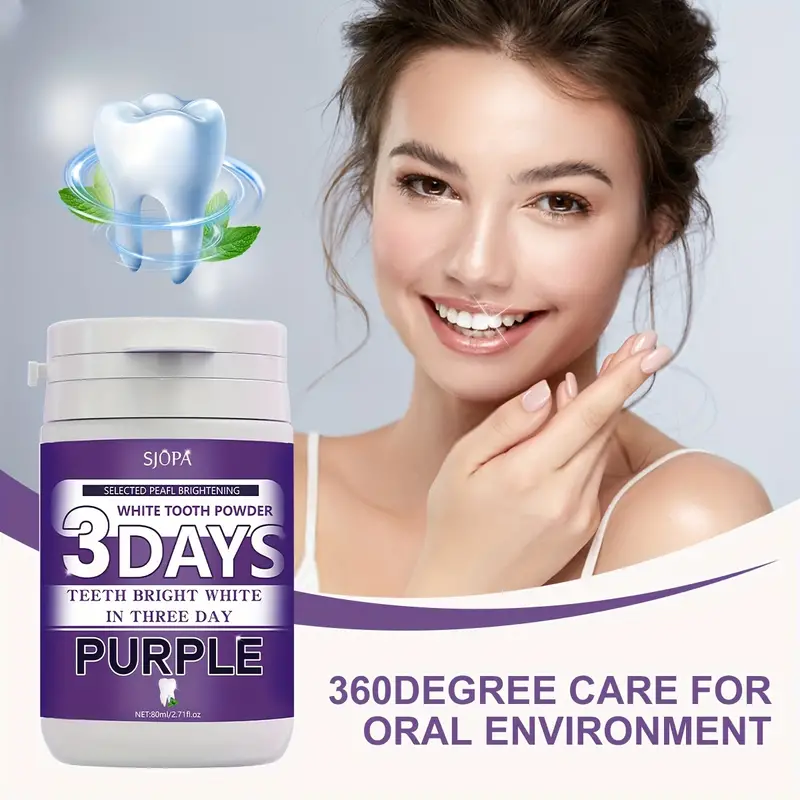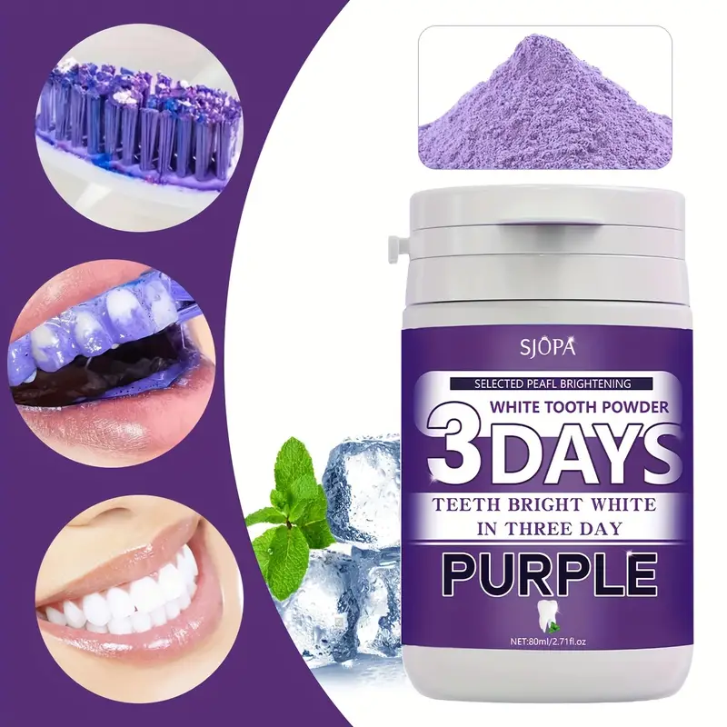 بودرة تبييض الأسنان باللون الأرجواني SJOPA – تنظيف عميق ونفس منعش، مثالية للعناية اليومية بالفم،