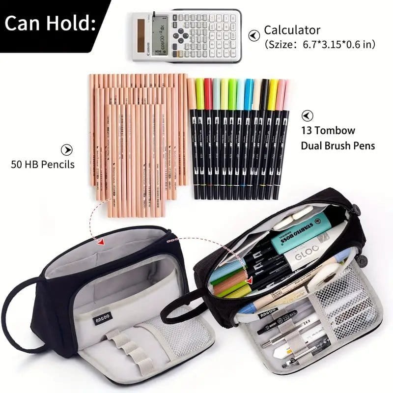 حقيبة أقلام مثلثة واسعة من القطيفة – منظم متين متعدد الأقسام للمكتب واللوازم المدرسية