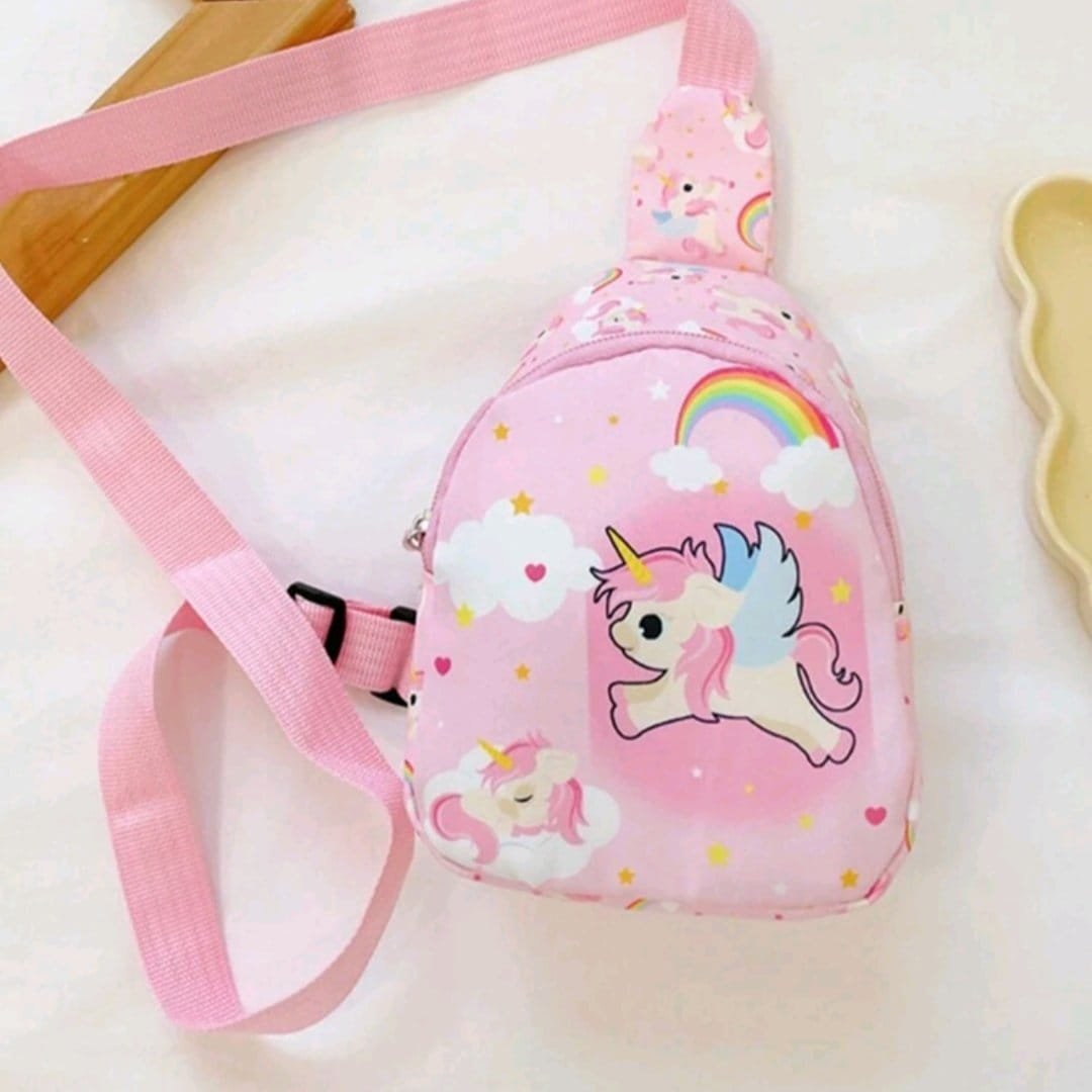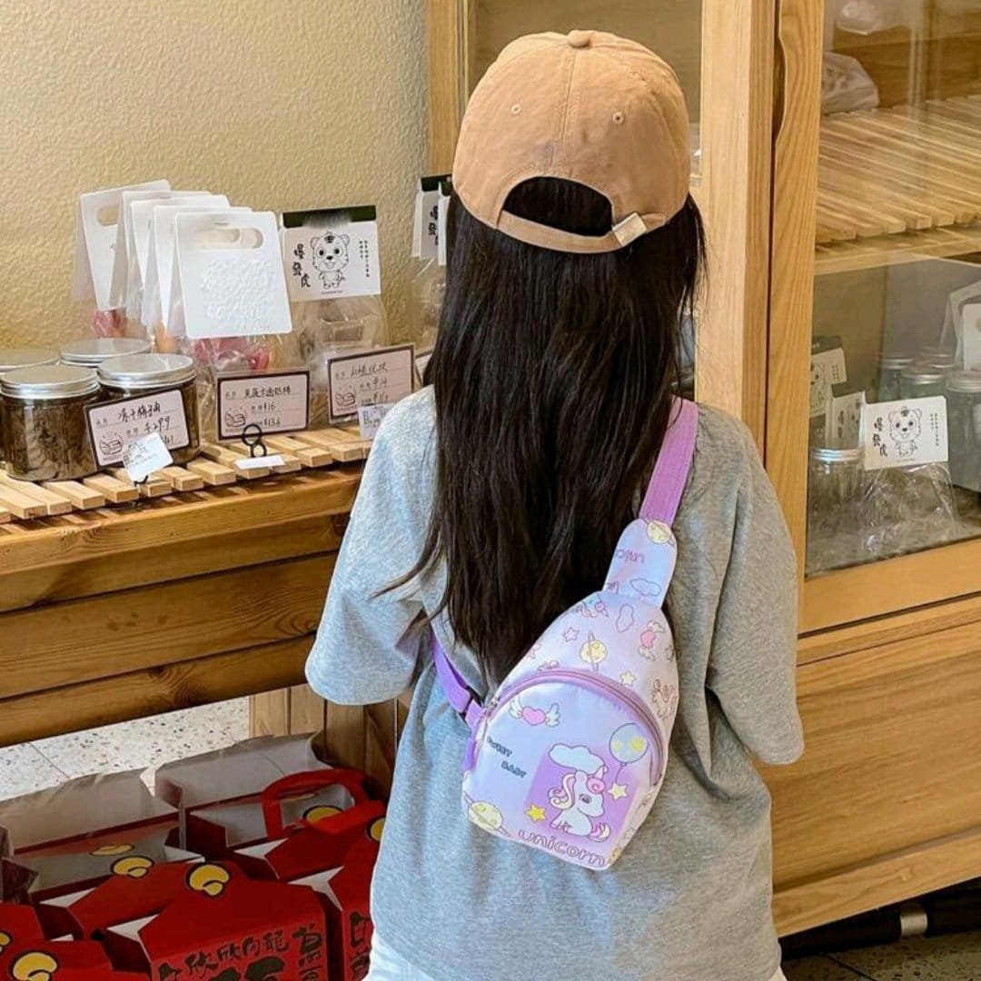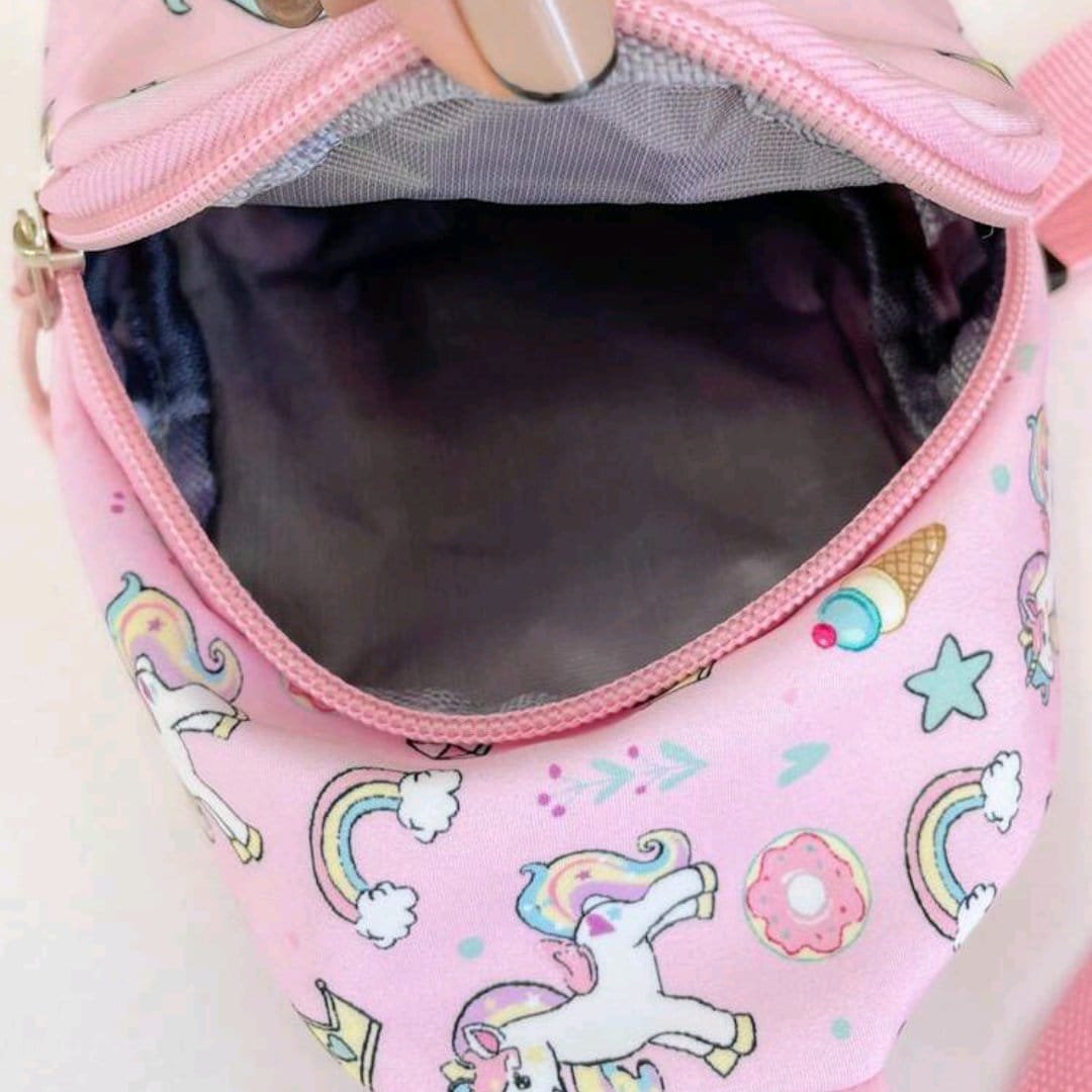 حقيبة خصر للاطفال ، حقيبة متعددة الألوان بنمط كرتوني للبنات، تنفع هدايا للبنات الصغيرات ، حقيبة ظهر للسفر للخرجات . لون القرنفل