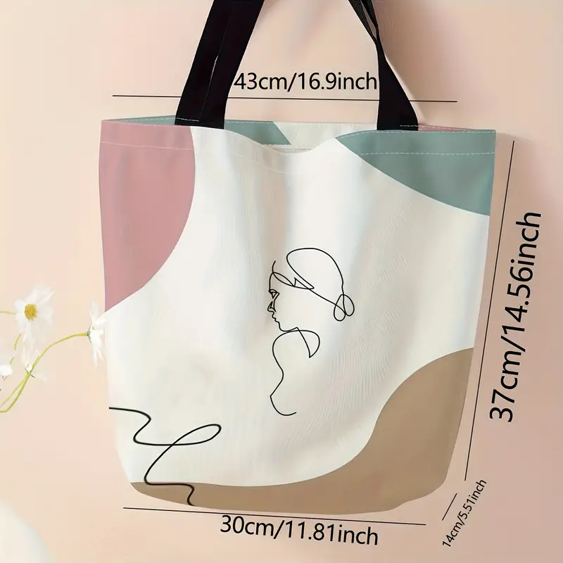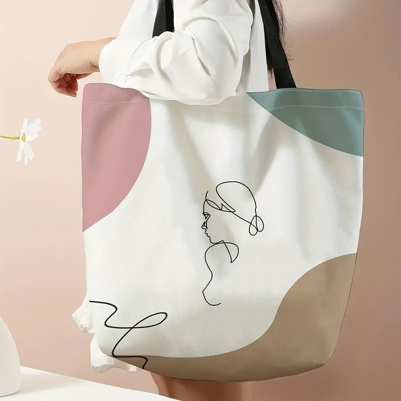 حقيبة يد كاجوال مصنوعة من البوليستر للنساء بطبعة فنية للفتيات بتصميم قابل لإعادة الاستخدام متعدد الأغراض بنمط طباعة عشوائي على قماش الكانفاس، مكونة من قطعة واحدة.
