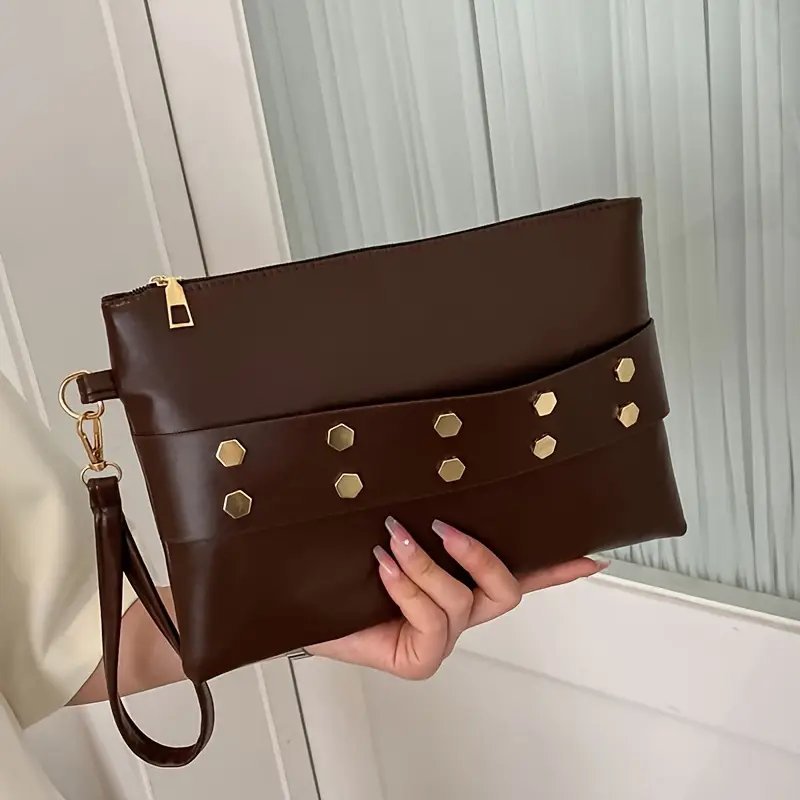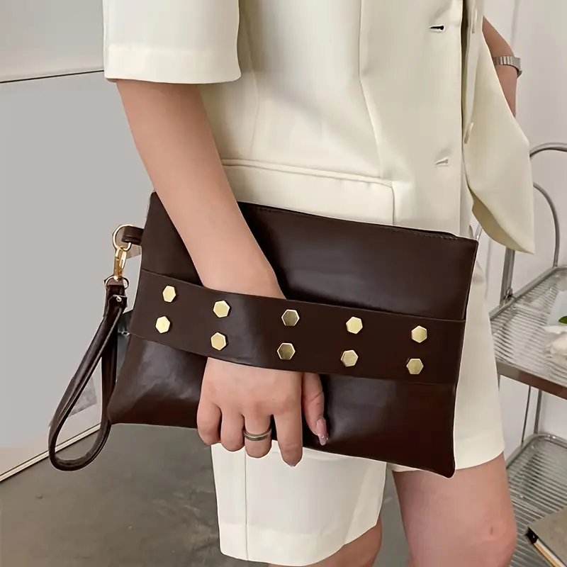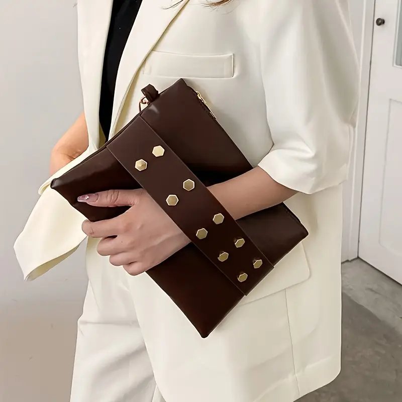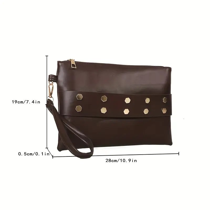 صيحات الموضه حقيبة يد نسائية أنيقة بتصميم فينتاج بريفيت – لون سادة، تصميم ظرف مع إغلاق بسحاب، مقاومة للبقع