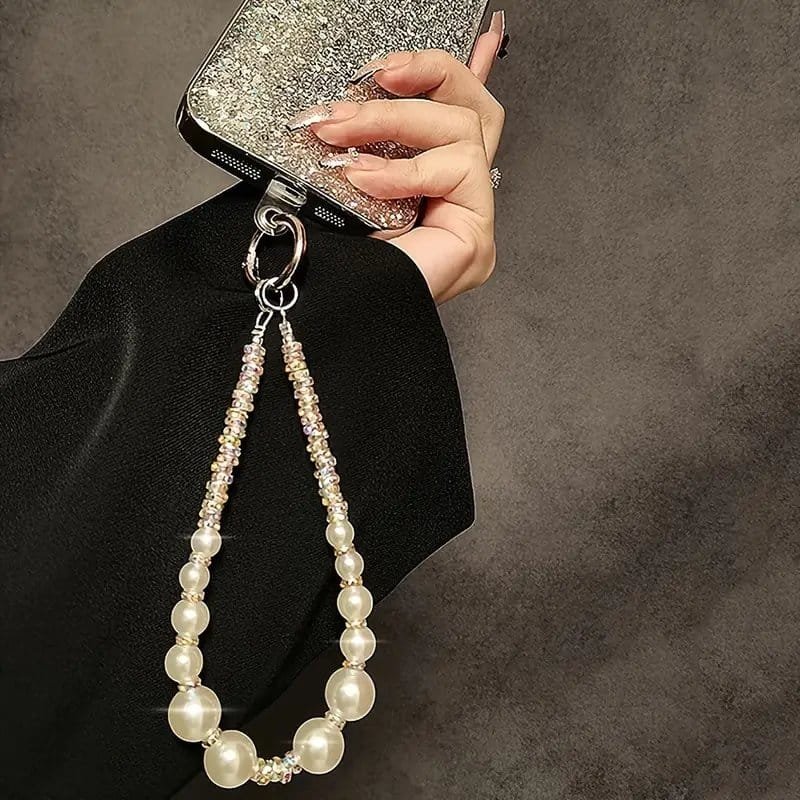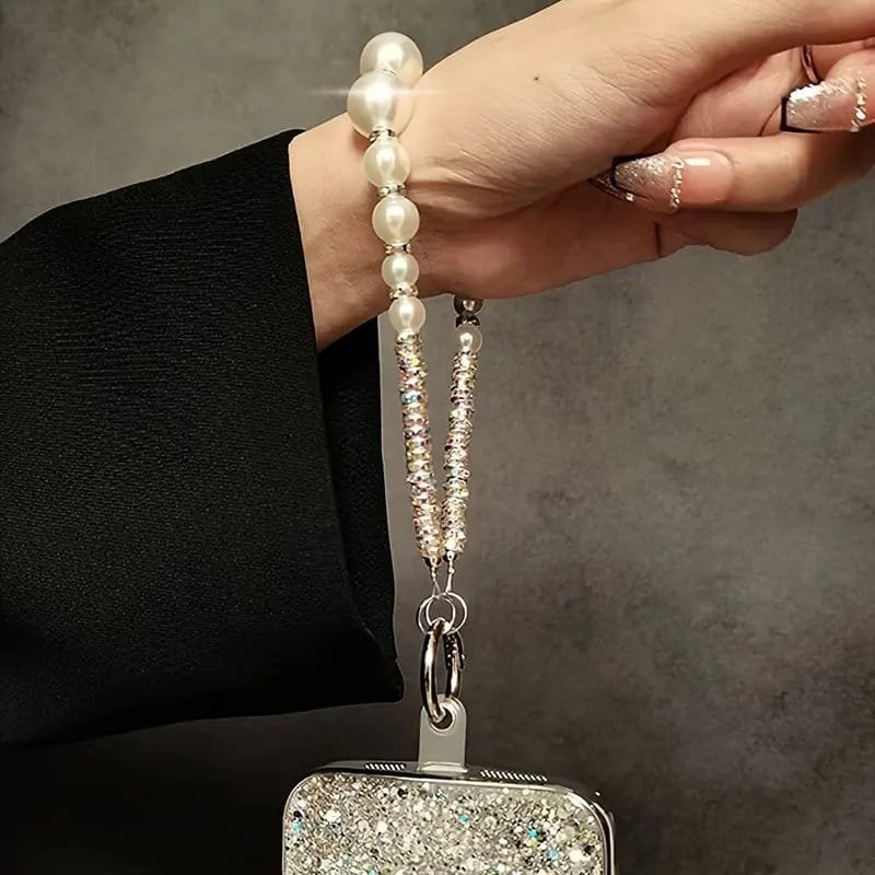 حلية هاتف مرصعة بأحجار الراين، حزام معصم من اللؤلؤ المصنوع يدويًا، سحر محمول فاخر ضد الضياع، قلادة براقة لحافظة الهاتف، الكاميرا، الأقراص المدمجة – مصنوعة من مادة PVC