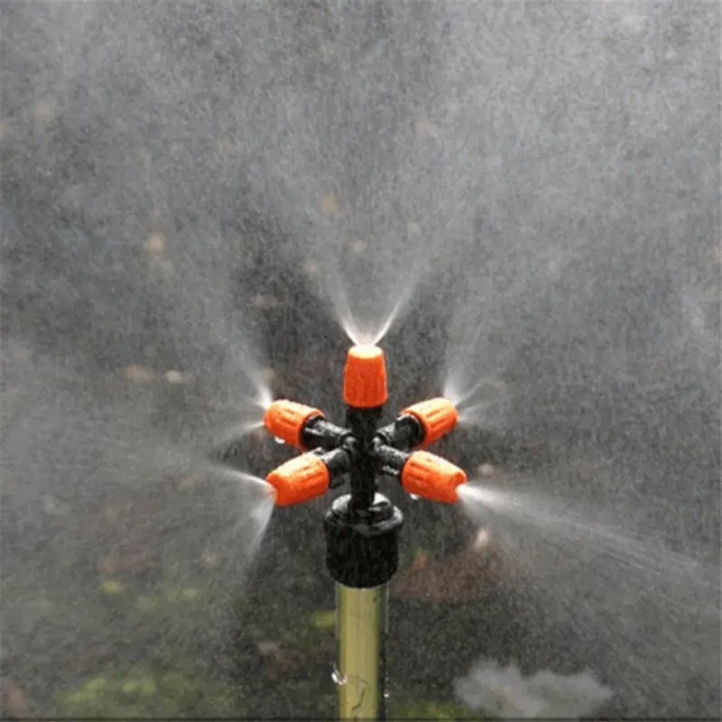 رشاش حديقة متعدد الاستخدامات يدور 360 درجة مع 5 منافذ – مثالي لري الحدائق والفناء والبيوت الزجاجية، والتحكم في الغبار والترطيب