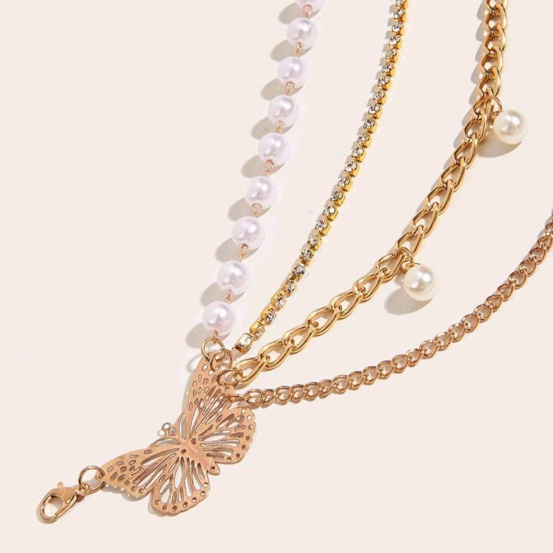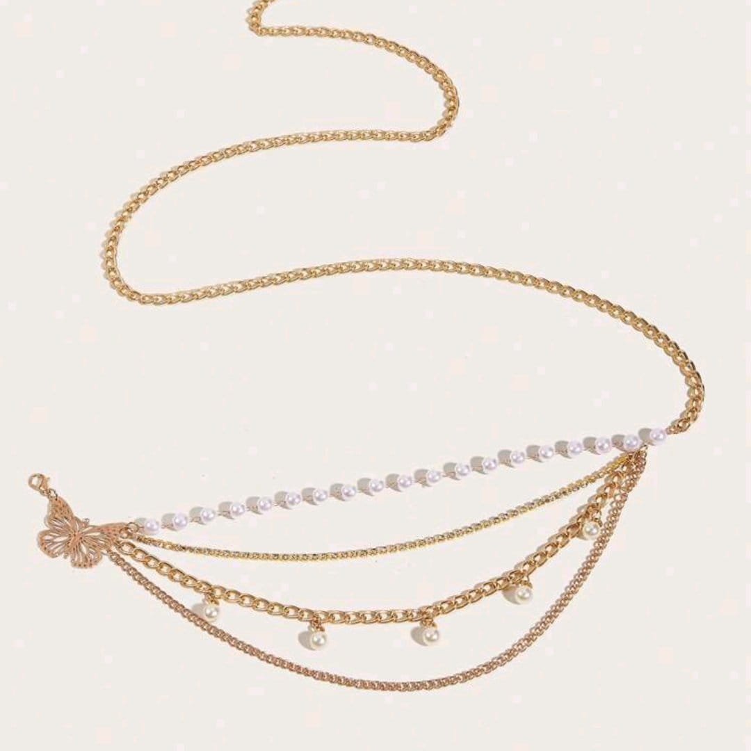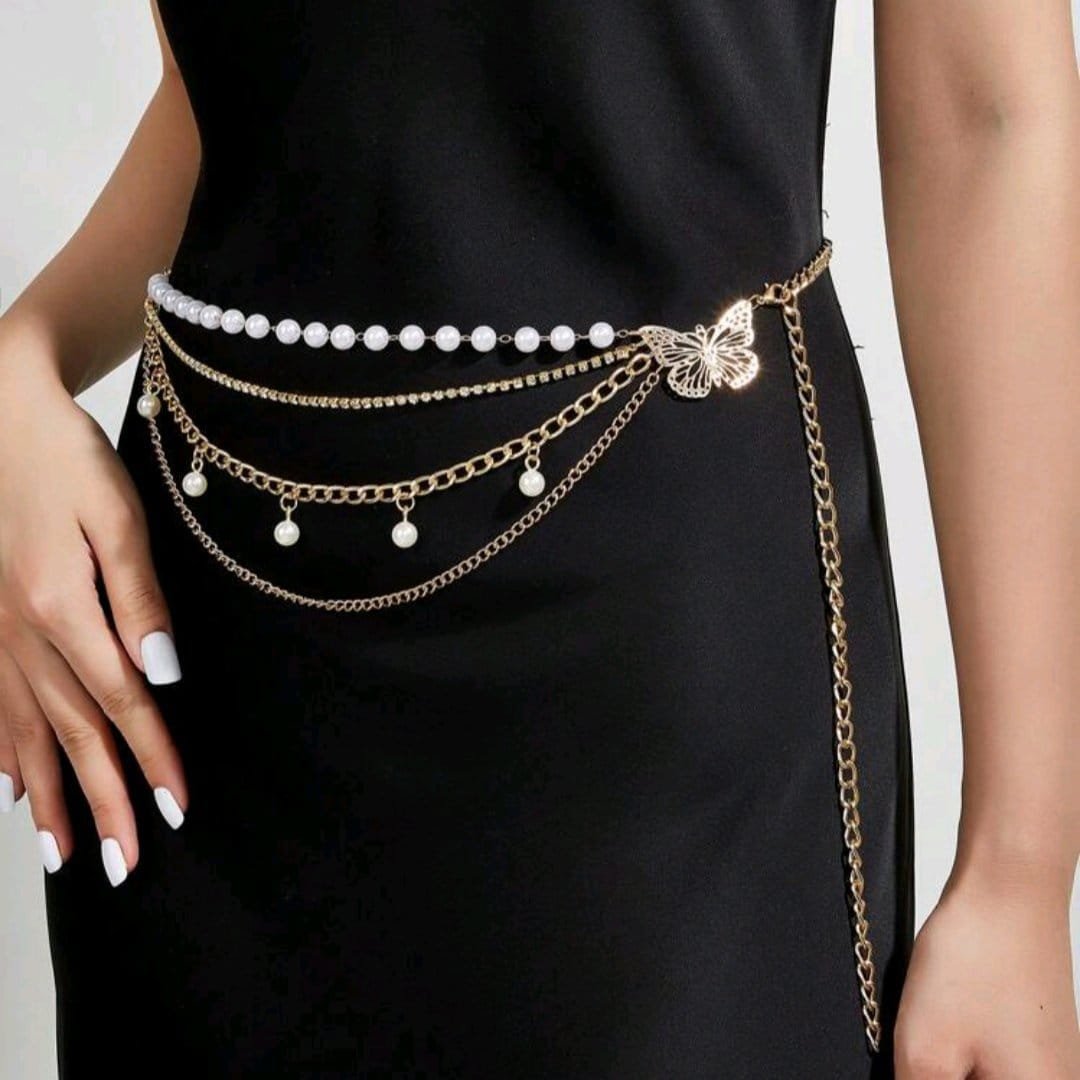 زنجيرة خصر للنساء انيقه بتصميم متعدد الطبقات من الخرز والفراشة ، مناسبة للزفاف والحفلات العامة واليومية وكإكسسوار للخصر، الطول 105 سم ،