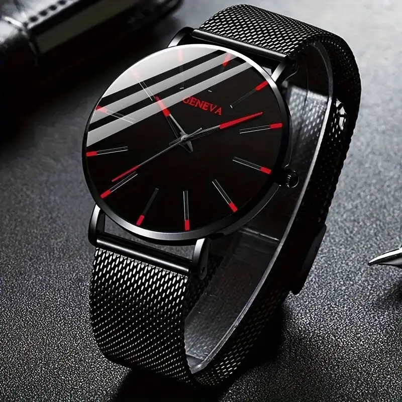 ساعة كوارتز أنيقة للرجال من الفولاذ المقاوم للصدأ باللون الأسود