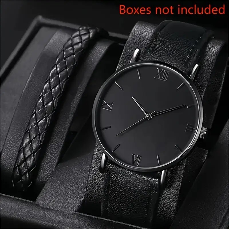 ساعة كوارتز سوداء مستديرة من قطعتين،، عقارب من سبائك معدنية، مينا من سبائك معدنية، أساور هدايا