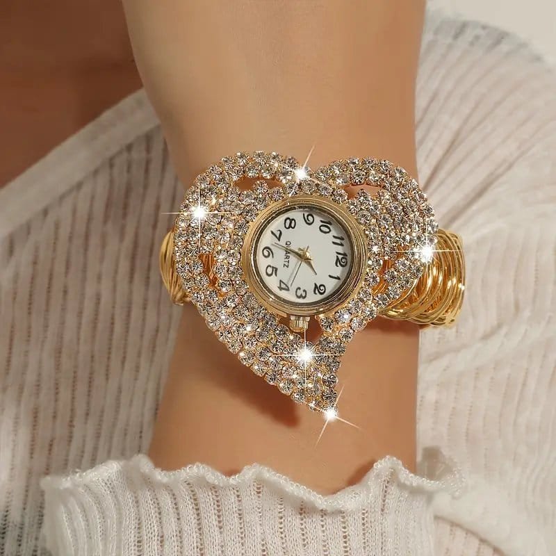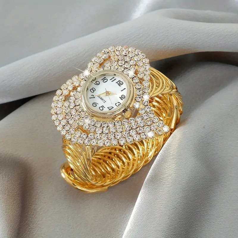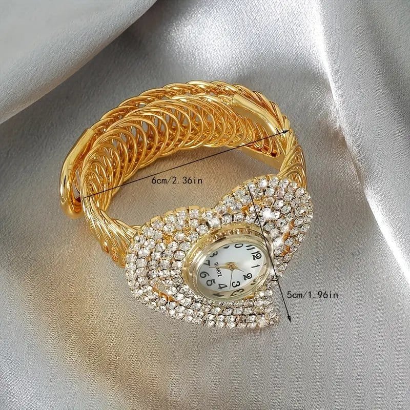 ساعة معصم نسائية مرنة على شكل قلب – عرض غير رقمي، حركة كوارتز، حزام نحاسي، علبة من سبيكة الزنك – إكسسوار موضة للمناسبات العادية، الحفلات، وتصوير الزفاف – مجموعة الشرق الأوسط
