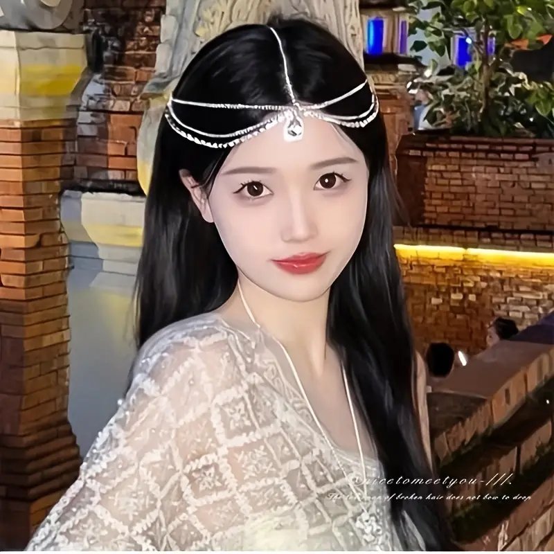سلسلة الجبين الكريستالية البوهيمية مع ستارة شرابة، إكسسوار شعر عرائس بأسلوب غريب، مقاومة للصدا