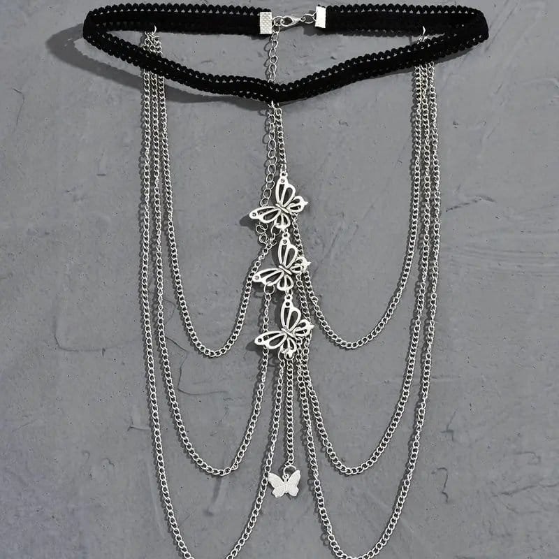 سلسلة الفخذ الأنيقة بتصميم بوهو-شيك متعددة الطبقات مع قلادة فراشة – مطلية بالفضة، حبل مطاطي للحفلات ، الهدايا ، اعياد الميلاد