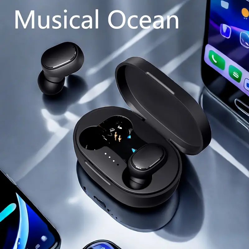 سماعات أذن لاسلكية جديدة أصلية A6S باللون الاسود- سماعات أذن صغيرة لهواوي، أندرويد، وآيفون
