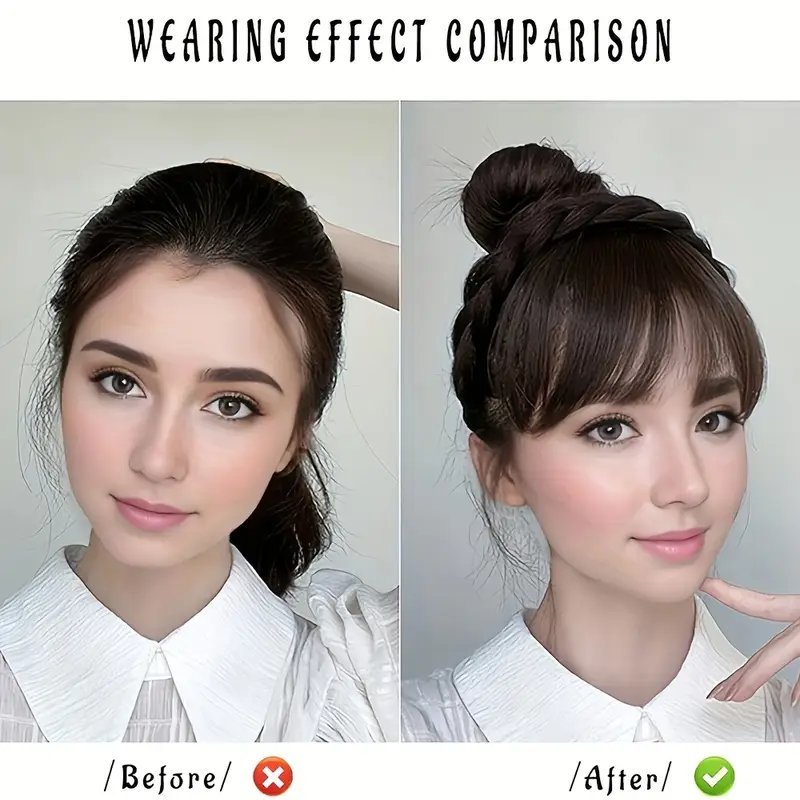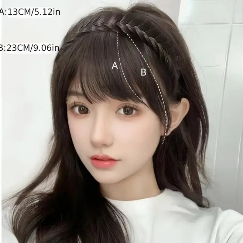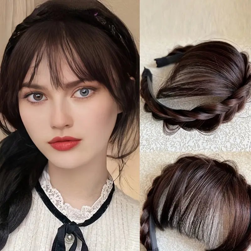 شعر مستعار برباط بني غامق أنيق مع غرة – شعر صناعي مقاوم للحرارة للنساء، أسلوب حفلات متعدد الاستخدامات