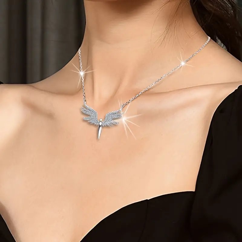 صيحات الموضة قلادة أنيقة بتعليقة جناح الملاك للنساء، سبيكة مع زركونيا مكعبة صناعية، هدية مثالية للصديقة أو الأم الزوجة