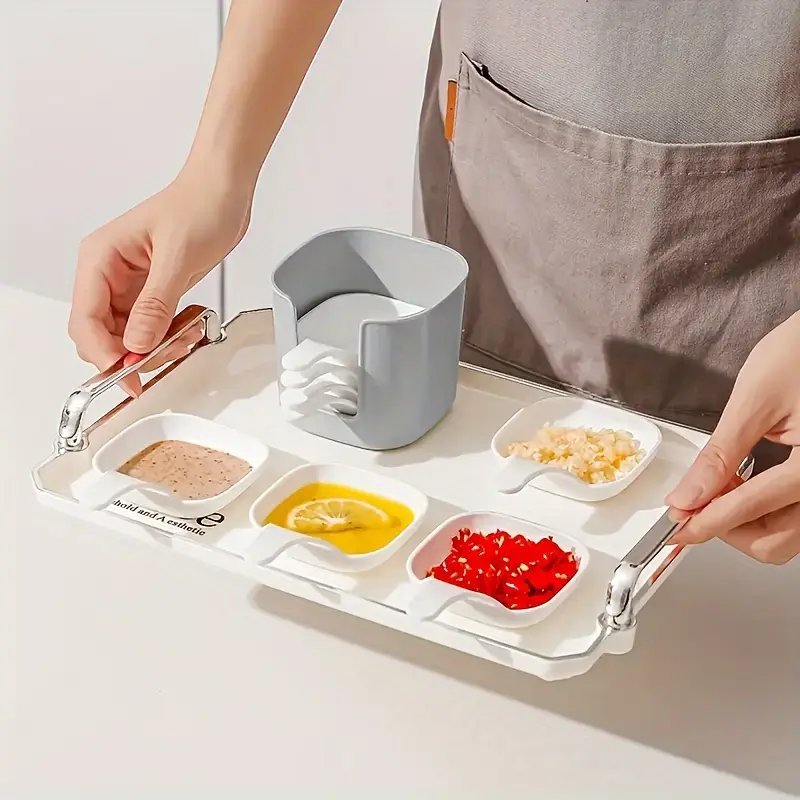 طقم أطباق صلصة الغمس 7 قطع ، أطباق بلاستيكية للتوابل والجبن مثالية للصلصات، الوجبات الخفيفة، والفواكه –