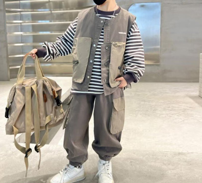 طقم بنطلون للأولاد من 3 قطع من عمر 4 إلى 14 سنة