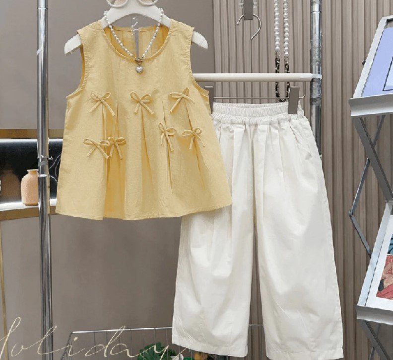 طقم بنطلون للبنات من عمر 3 إلى 13 سنة مكون من قطعتين-ملابس انيقة