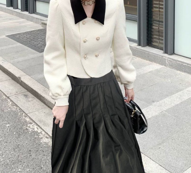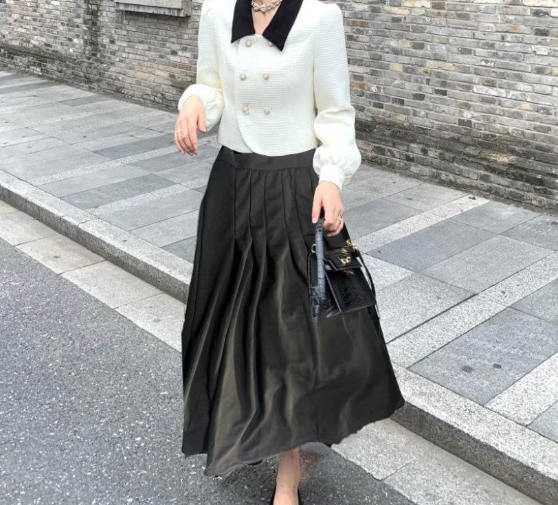 طقم تنورة نسائية مكون من قطعتين بأكمام طويلة وبلون واحد