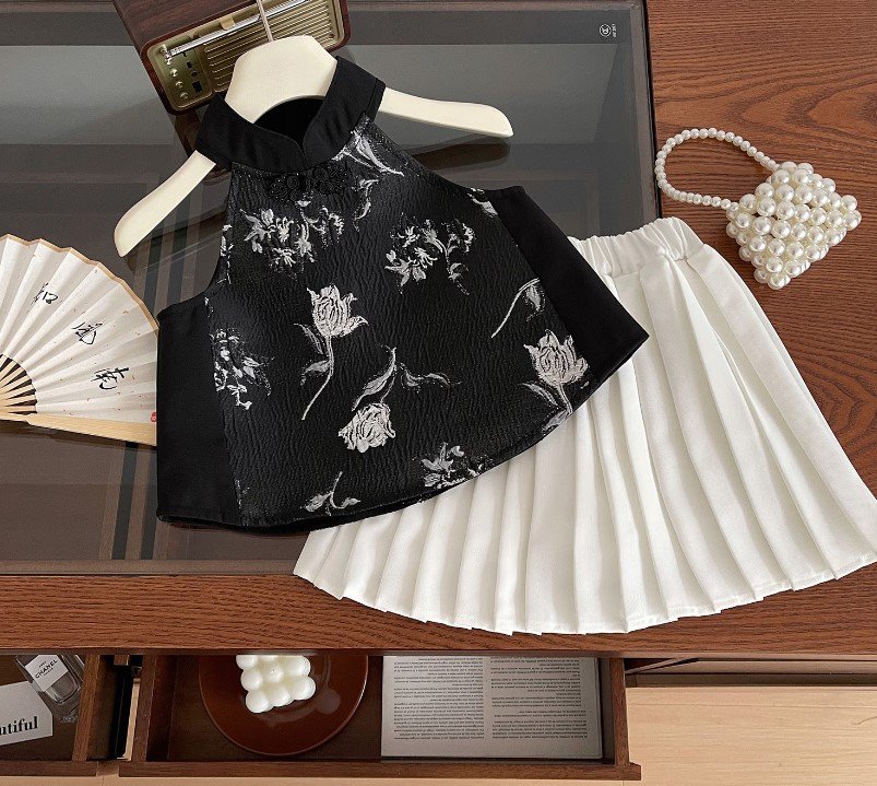 طقم فستان للبنات من عمر 2 إلى 9 سنوات مكون من قطعتين-ملابس انيقة