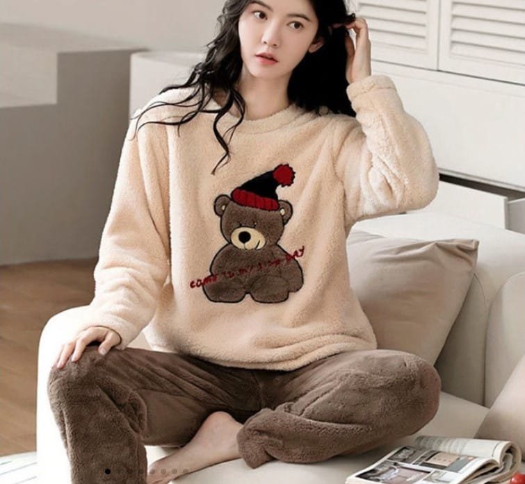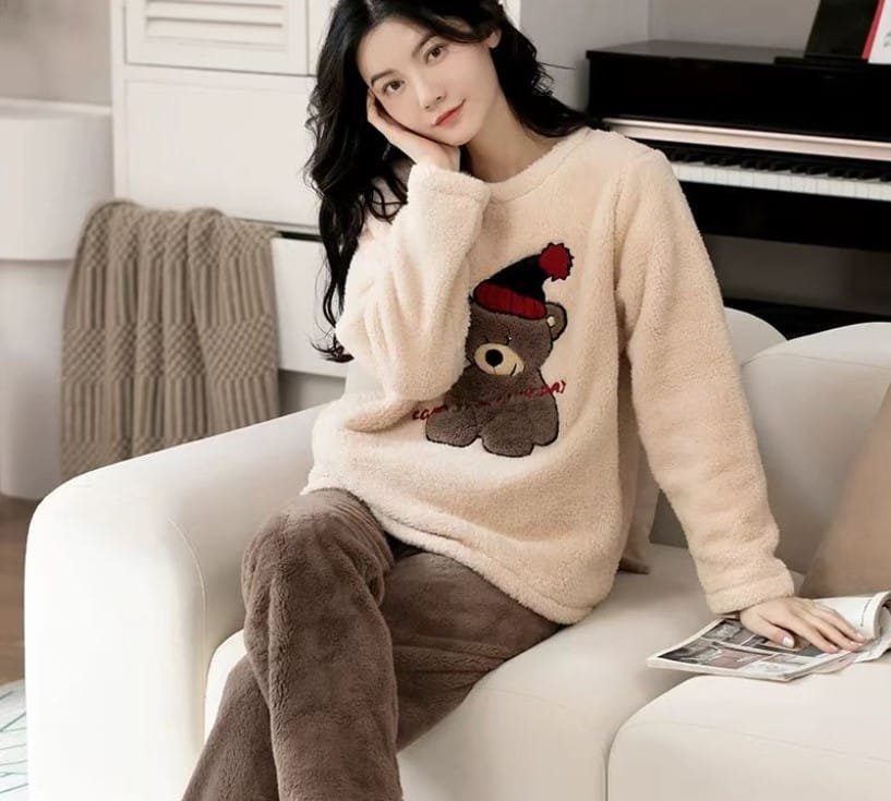 طقم نسائي بأكمام طويلة مكون من قطعتين شتوية ثقيلة قطنية ومريحة