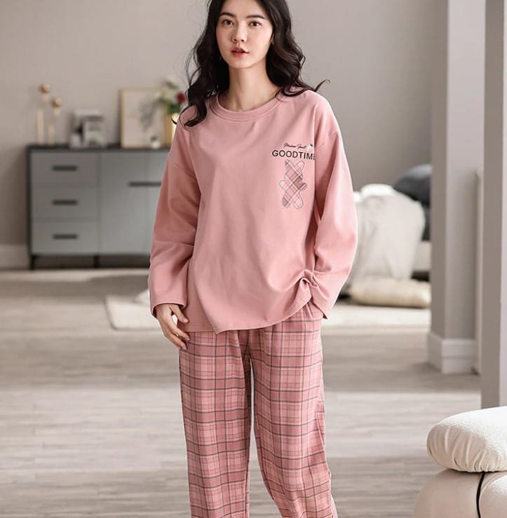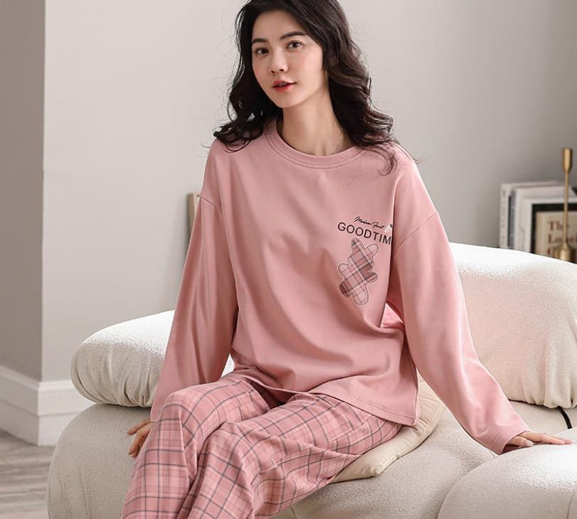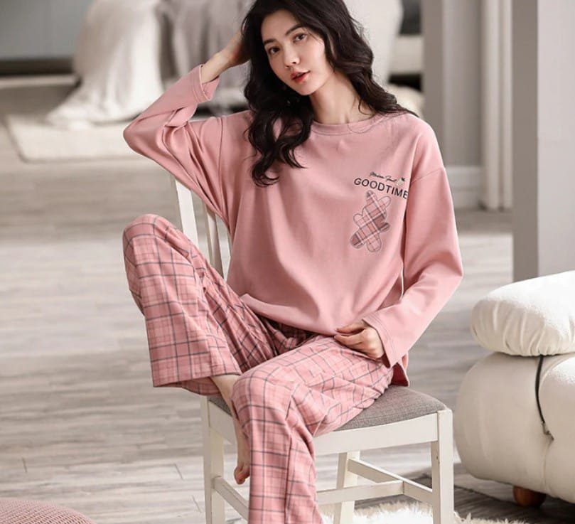 طقم نوم نسائي بأكمام طويلة مكون من قطعتين بيجامة نسائية خفيفة قماش بارد ومريح