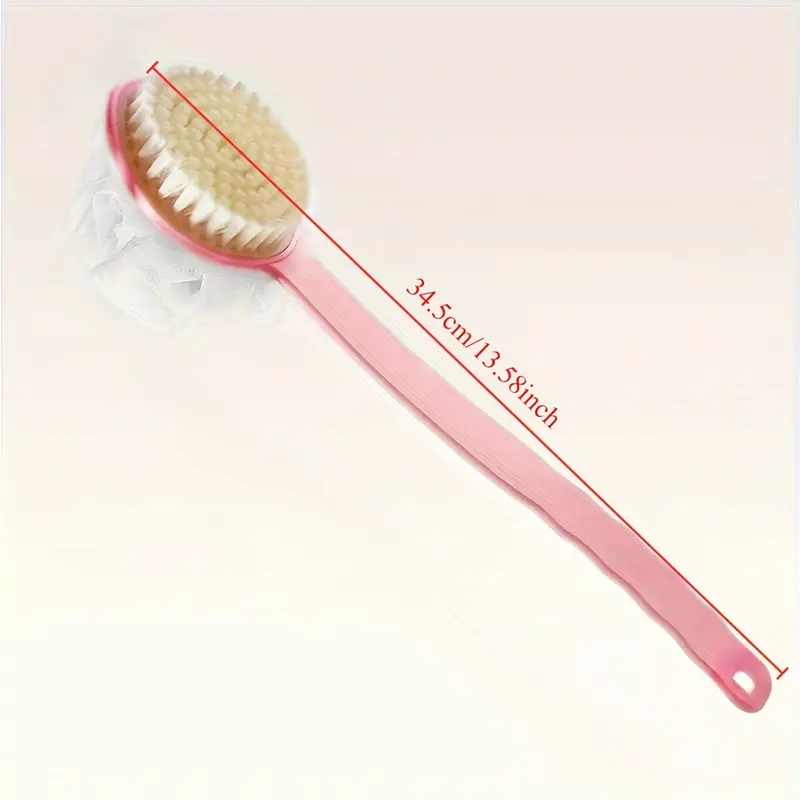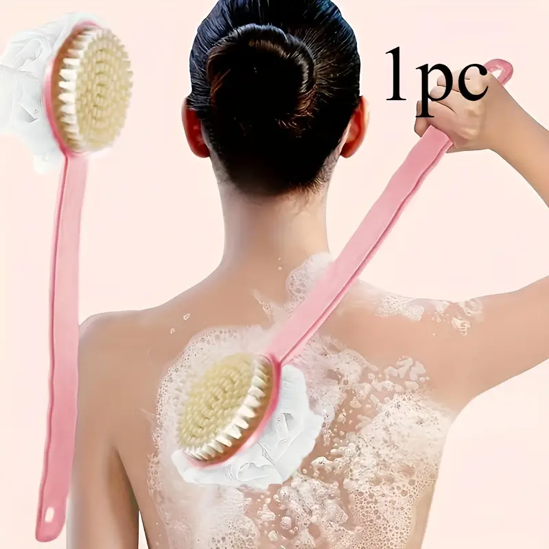 فرشاة استحمام ناعمة مع ليفة وشعيرات – ذات جانبين، مقبض طويل مريح للتنظيف العميق – يقشر الوجه والجسم بلطف، تجربة جودة السبا – مناسب لجميع الجنسين، أداة حمام أساسية