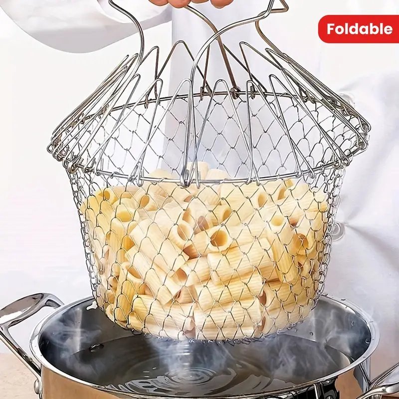 قطعة واحدة ، سلة قلي ، سلة قلي من الفولاذ المقاوم للصدأ ، سلالة شطف بالبخار قابلة للطي للمطبخ ، مصفاة سلة القلي المنزلي