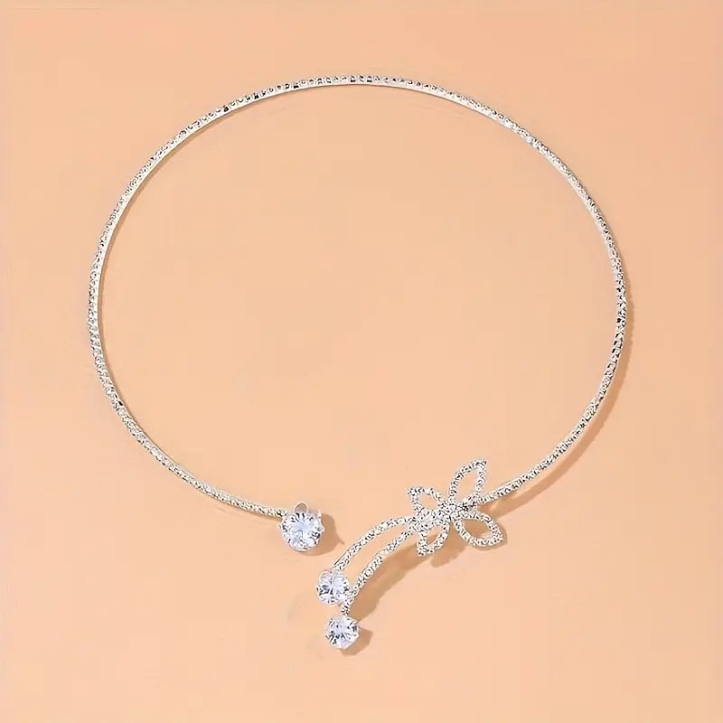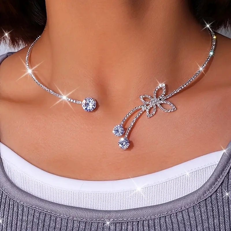 قلادة أنيقة بتعليقة فراشة لامعة – سلسلة ترقوة فاخرة مرصعة بالراين مع لمسات كريستالية مقاومة للصدا