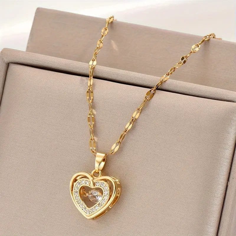 قلادة ذهبية من الفولاذ المقاوم للصدأ ثلاثية الأبعاد على شكل قلب للارتداء اليومي