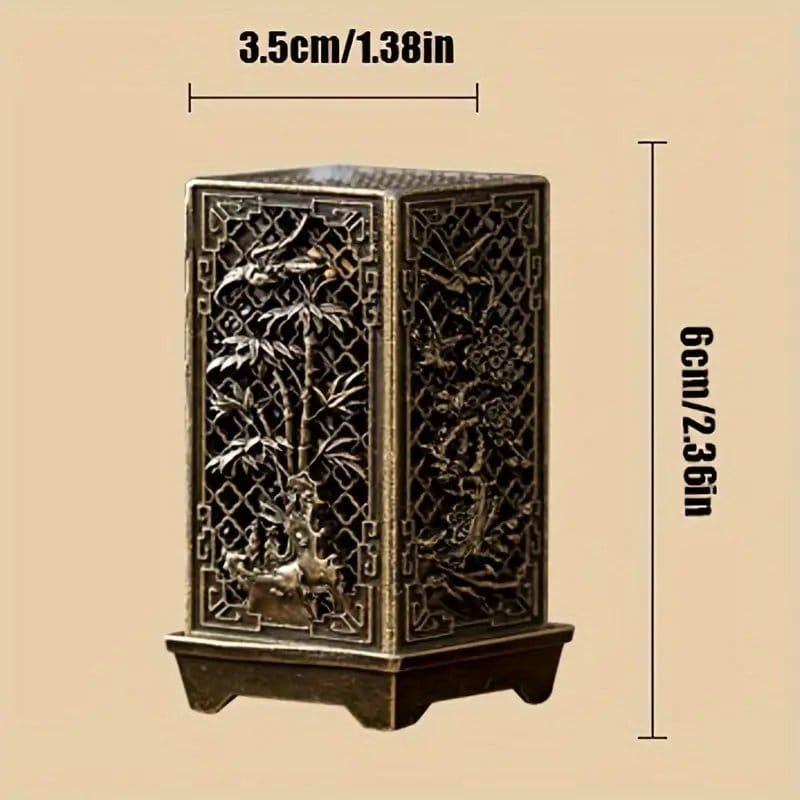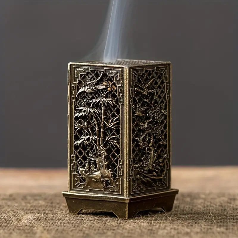 مبخرة أنيقة من سبيكة بتصميم البرقوق، الأوركيد، الخيزران والأقحوان – عمود مربع مجوف لديكور المنزل، المكتب، وغرفة الشاي