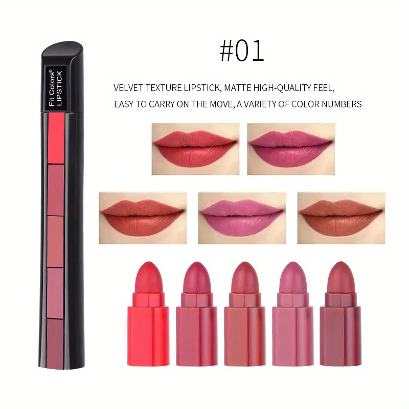 مجموعة أحمر شفاه مات 5 ألوان، مزيج من الألوان الزهرية والحمراء، تأثير مخملي، مكياج شفاه طويل الأمد غير لزج مناسب لجميع أنواع البشرة، تشطيب مات، سهل الحمل