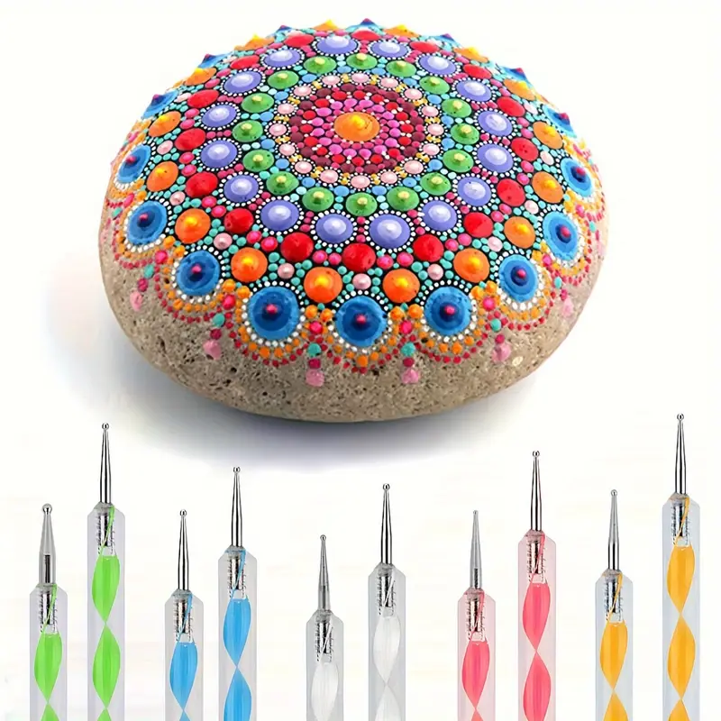 مجموعة أدوات دوتينغ من الفولاذ المقاوم للصدأ مكونة من 5 قطع، مجموعة رسم الصخور مع أقلام الطلاء