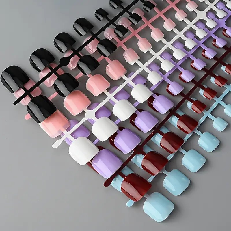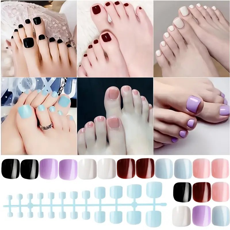 مجموعة أظافر أصابع القدم اللاصقة اللامعة من الأكريليك 144 قطعة – مربعة قصيرة، تغطية كاملة بـ6 ألوان (أزرق بحيرة/أبيض/أحمر/عاري) – مثالية للمانيكير والبيديكير DIY، أظافر أصابع القدم الصناعية، 6 الوان مختلطه