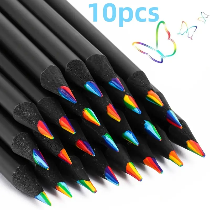 مجموعة أقلام تلوين برتفونر 5/10 قطع بألوان قوس قزح 7 ألوان، أقلام خشبية غير سامة للرسم والتلوين والتلوين