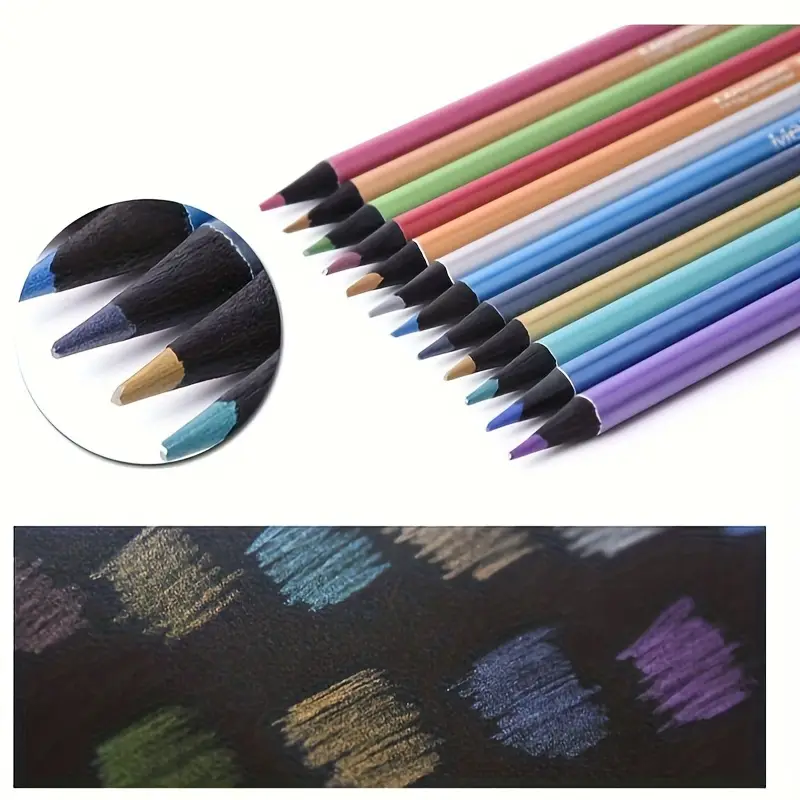 مجموعة أقلام تلوين معدنية بـ24 لونًا – لوازم إبداعية للرسم والتلوين والجرافيتي DIY للمكتب بألوان خشبية عشوائية، تصميم مريح، ألوان زاهية