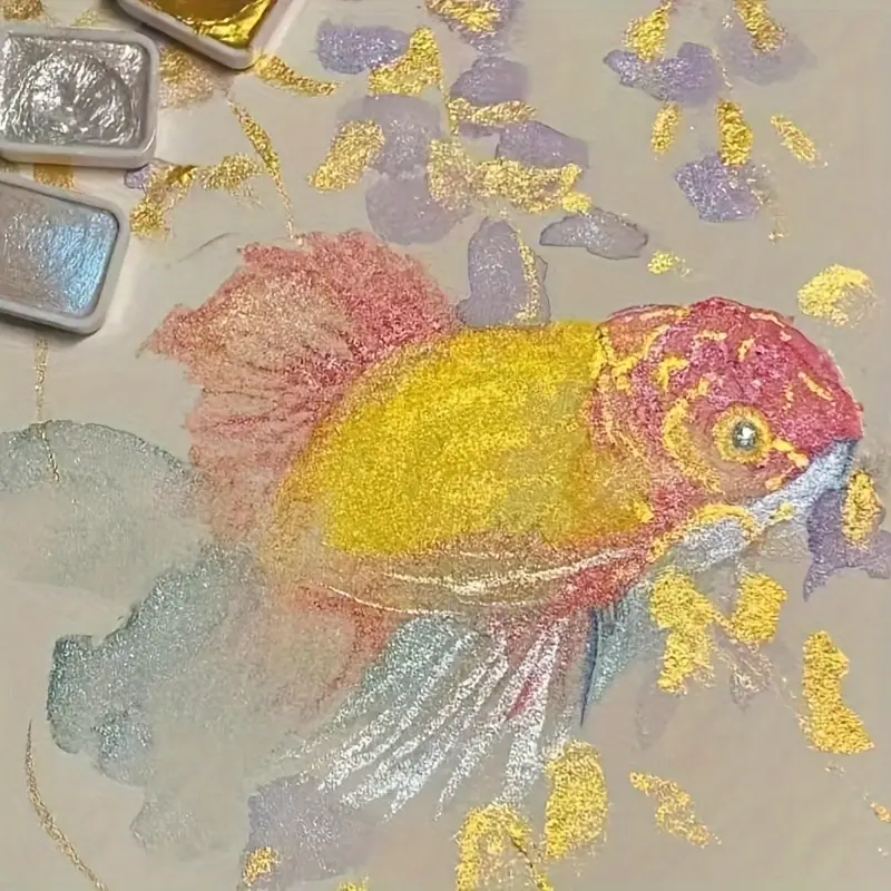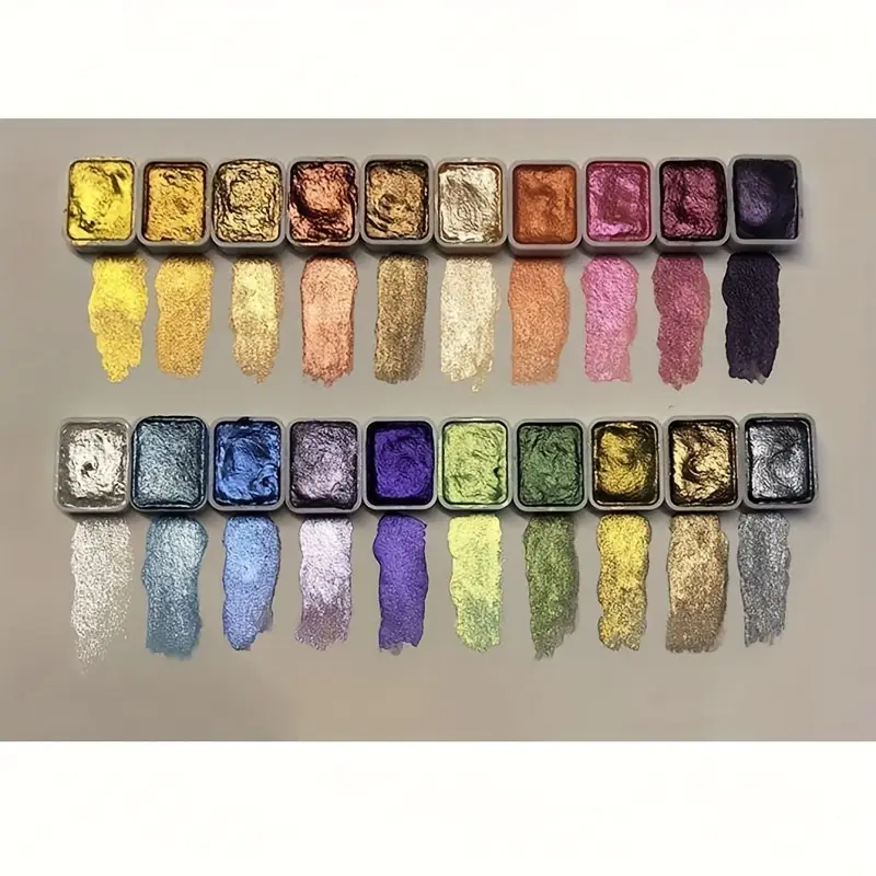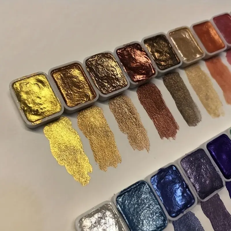 مجموعة ألوان مائية لؤلؤية بـ12 لون، تغليف صلب للرسم والخط الصيني التقليدي
