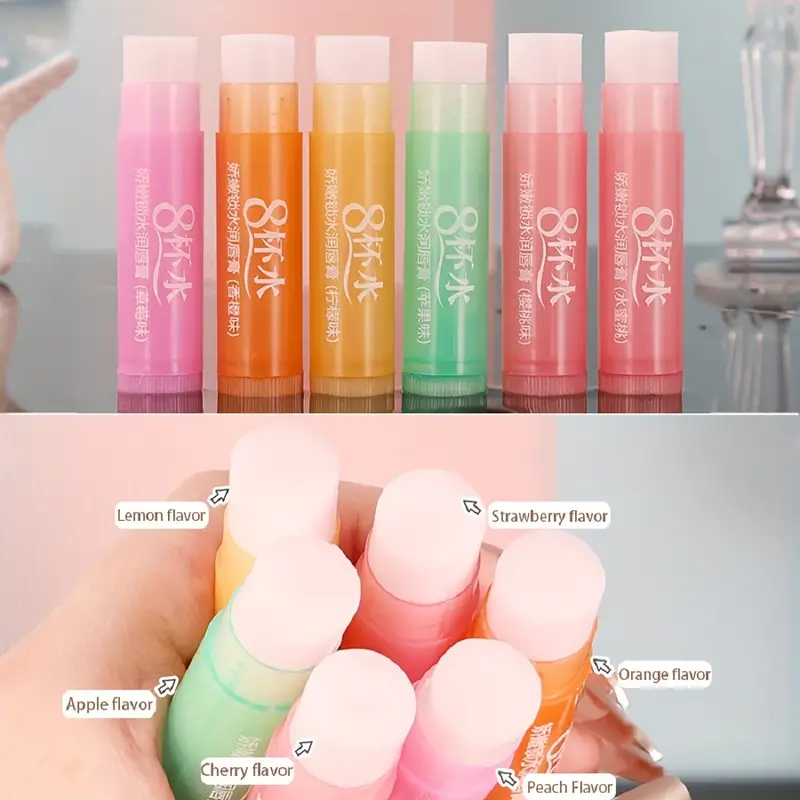 مجموعة بلسم شفاه فاكهي، 6 قطع/مجموعة، ترطيب يدوم طويلاً
