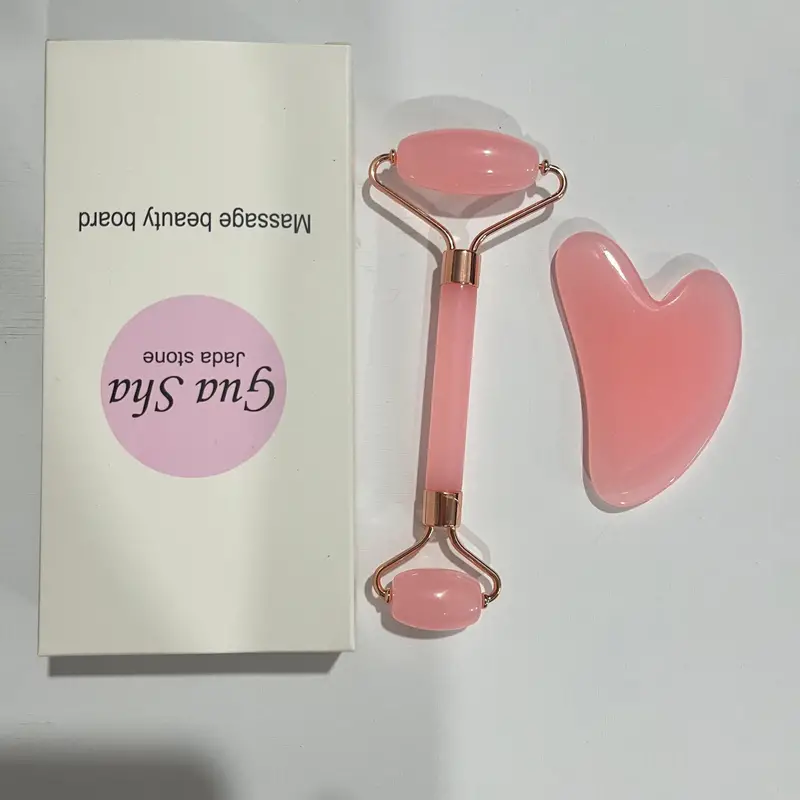 مجموعة جوا شا ورولر للوجه من الكوارتز الوردي – أداة يدوية للاسترخاء لتجديد البشرة، وتحسين الدورة الدموية، وعلاج الانتفاخات