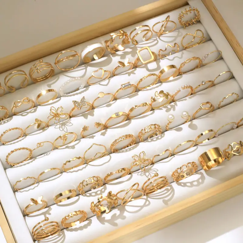 مجموعة خواتم أنيقة بتصميم هندسي من الزنك ولؤلؤ صناعي مكونة من 66 قطعة – للنساء والفتيات – مناسبة للإرتداء اليومي والحفلات – متوافقة مع جميع المواسم
