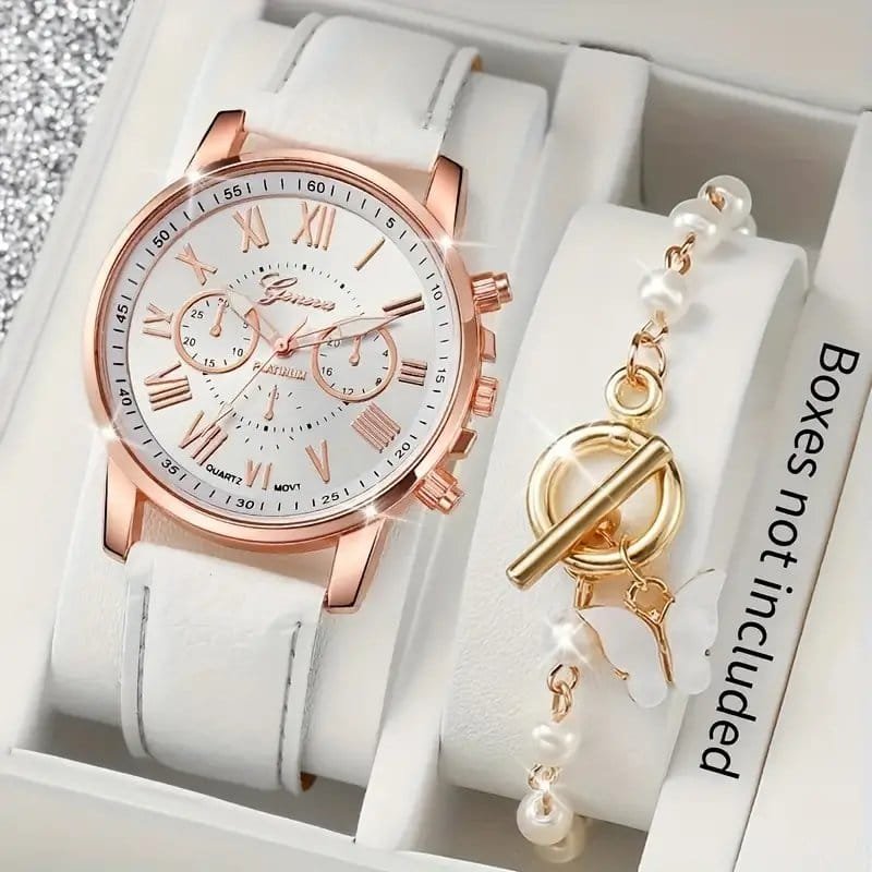 مجموعة ساعات كوارتز نسائية بأسلوب المينيمالي من 2 قطع، ساعة واحدة + سوار واحد، مناسبة للاستخدام اليومي أو لتقديم الهدايا، مجموعة ساعات نسائية