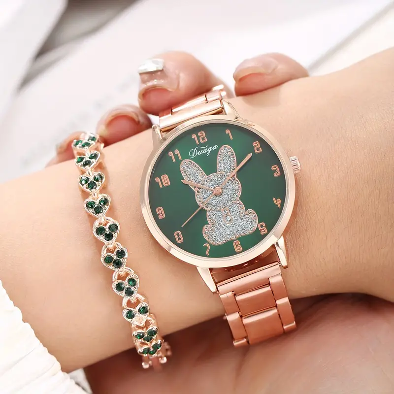 مجموعة ساعة وسوار أنيقة للنساء من 2 قطع – حركة كوارتز أنيقة، سوار من سبيكة الزنك مقاومة للصدا