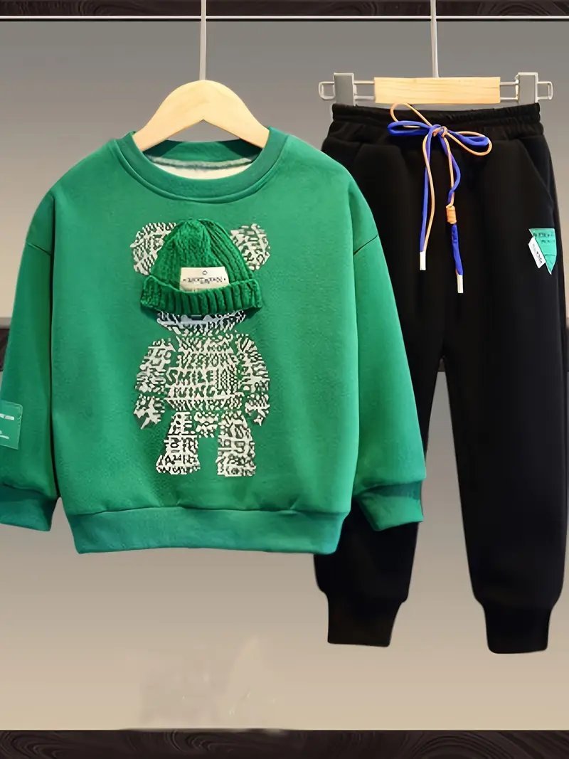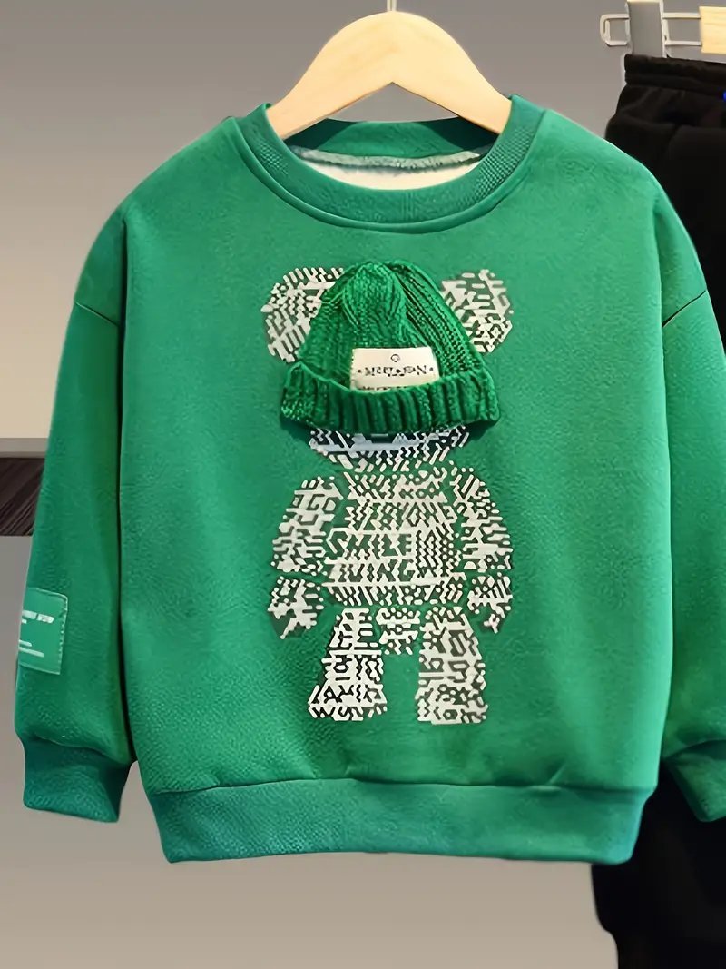 قماش قطني بتصميم دب بارد مع زينة قبعة، ملابس للأولاد في الهواء الطلق من عمر 4-5سنوات