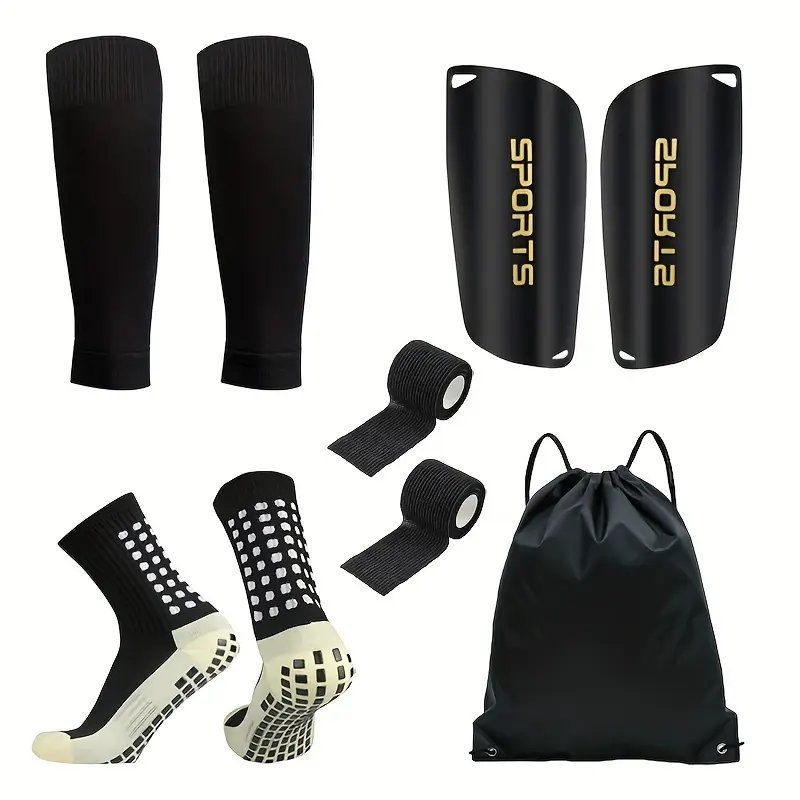 مجموعة معدات كرة القدم المفضلة لدى العملاء: 5 قطع: جوارب كرة قدم سيليكون غير قابلة للانزلاق، أكمام الساق، حقيبة ظهر برباط ووسادات الساق –