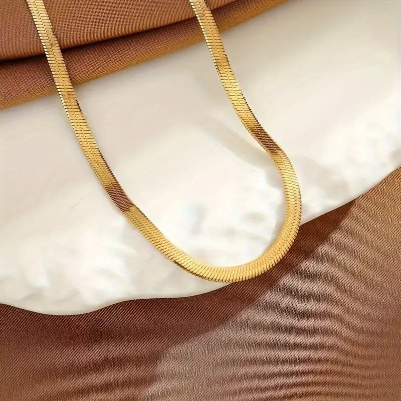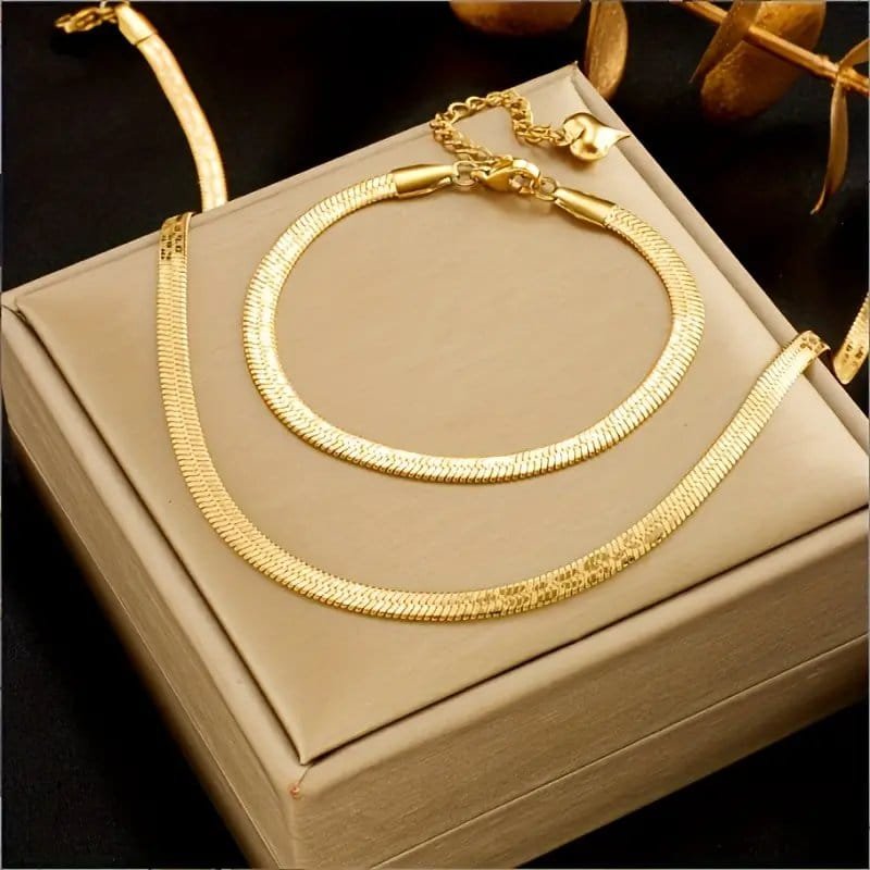 مجموعة من قطعتين، قلادة وسوار من سلسلة عظام الثعبان المصنوعة من الفولاذ المقاوم للصدأ المطلي بالذهب عيار 18 قيراطًا، تصميم بسيط منسوج مع قلب حب، نمط بسيط، مثالي للأزياء اليومية