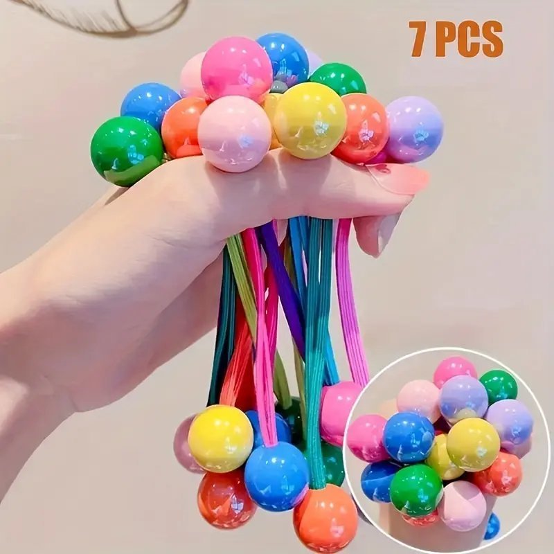 مجموعة من 7 قطع من ربطات الشعر الخرزية اللطيفة – أربطة ذيل الحصان المرنة الملونة للنساء والفتيات، المتينة، للشعر الطويل،