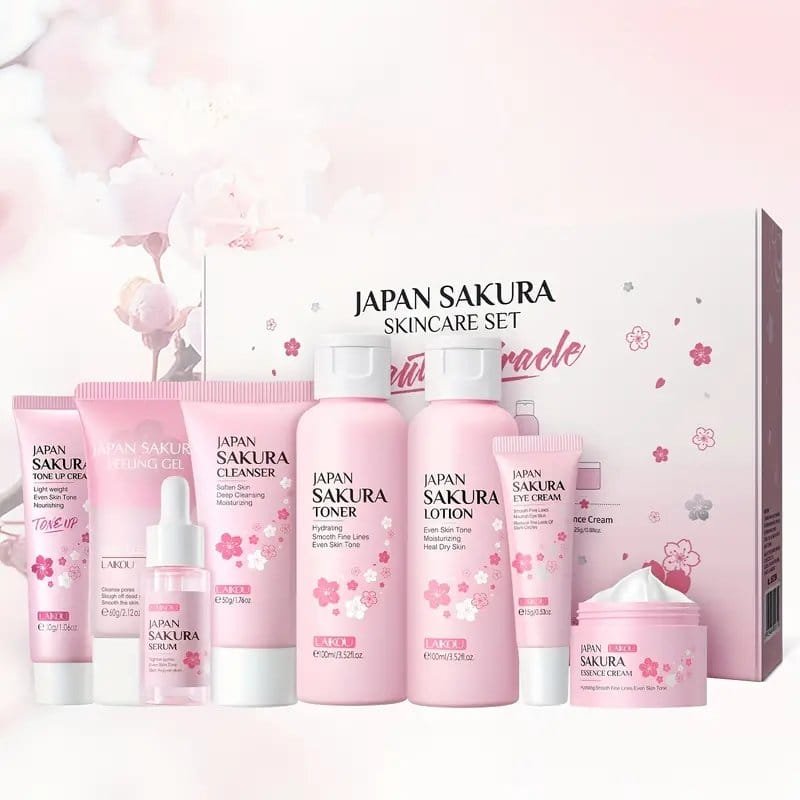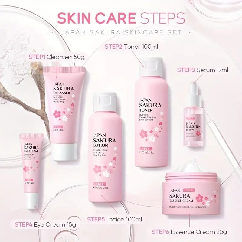 مجموعة للعناية بالبشرة للنهار والليل مجموعة هدايا للعناية بالبشرة بزهرة الساكورا من LAIKOU، تنظيف عميق للبشرة، ترطيب وتغذية للبشرة – للبشرة الجافة والمختلطة.