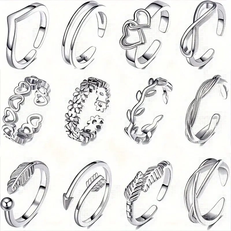 مجموعة 12 قطعة من خواتم الأقدام العتيقة بأسلوب الشاطئ، تصميم فريد بنقشة قلب مفرغة وزهرة وورقة لخواتم أصابع القدم النسائية العتيقة مقاومة للصدأ