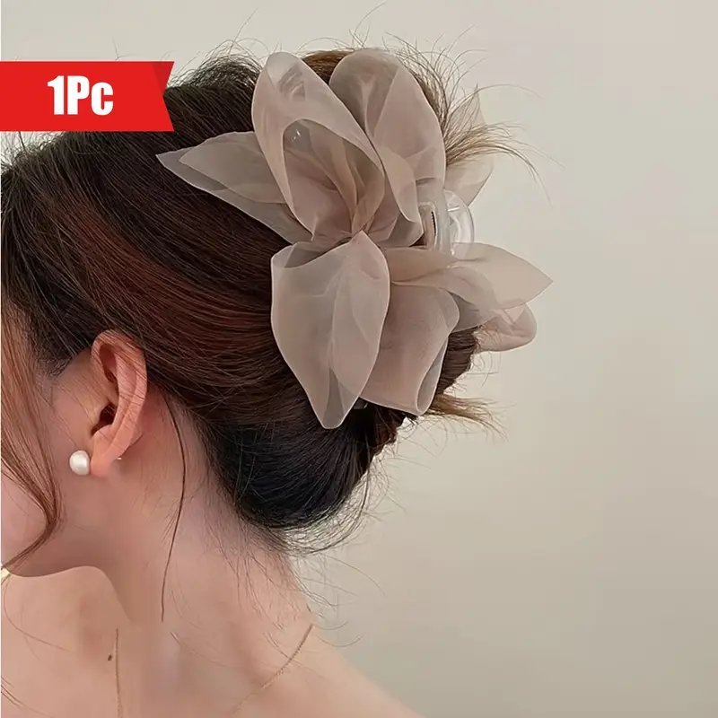 مشبك شعر أنيق بشكل قوس من الشبكة، ملتصق بالشعر بأناقة مع سحر نمط قديم